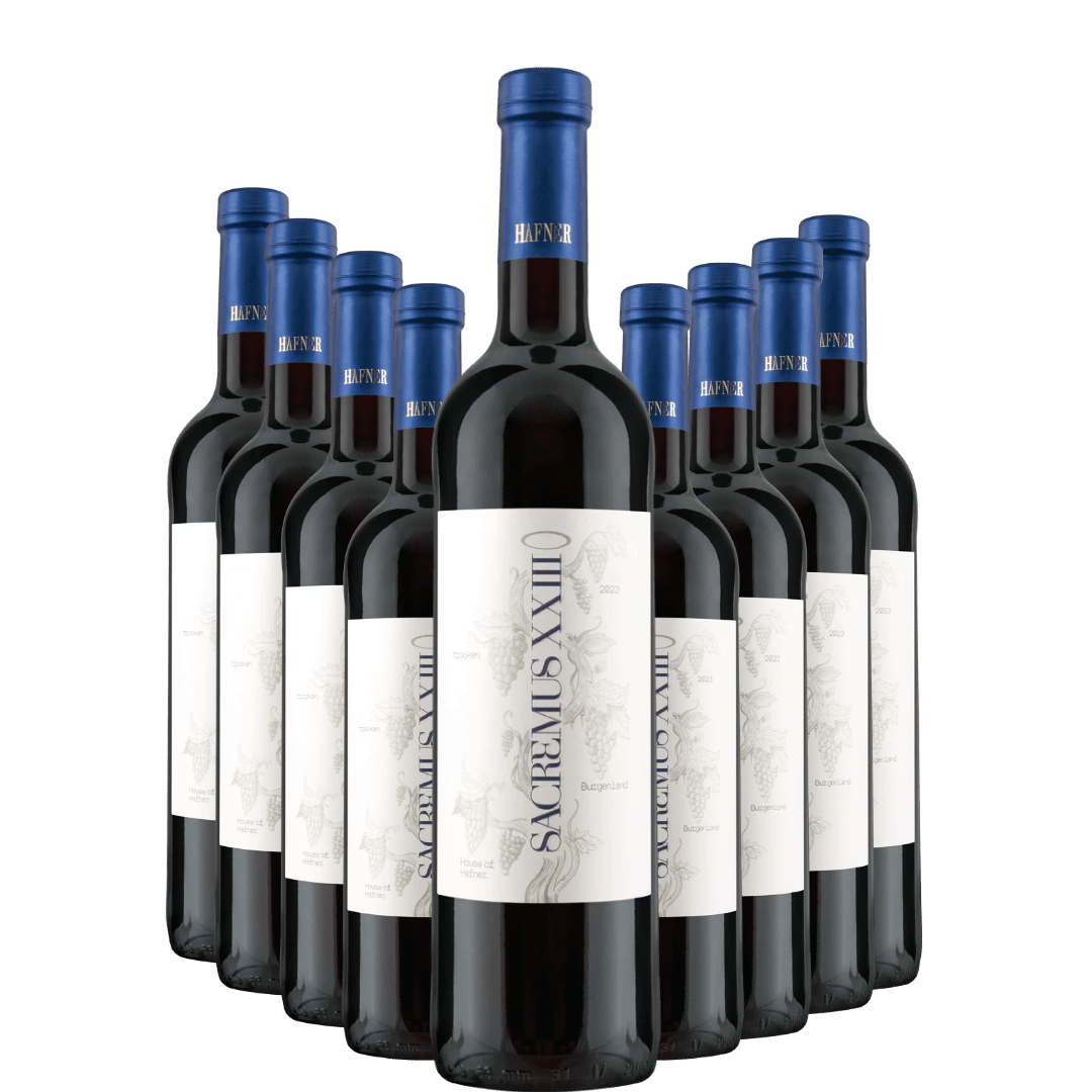 Der SACREMUS ist ein echter Schmeichler! Rubinrot mit blauen Blitzen, in der Nase Kirsche und ein bisschen Schoko-Kick. Am Gaumen superweich, saftige Brombeere und ein Hauch von Vanille. Die Tannine sind butterweich – ein Wein zum Dahinschmelzen!